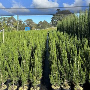Juniperus Pyramidalis, or Italian Cypress, is renowned for its tall, slender form and rich green foliage. Ideal for formal plantings, it creates dramatic vertical accents in garden beds or pathways, thriving in the coastal climate with its heat and drought tolerance, providing year-round beauty to outdoor spaces.